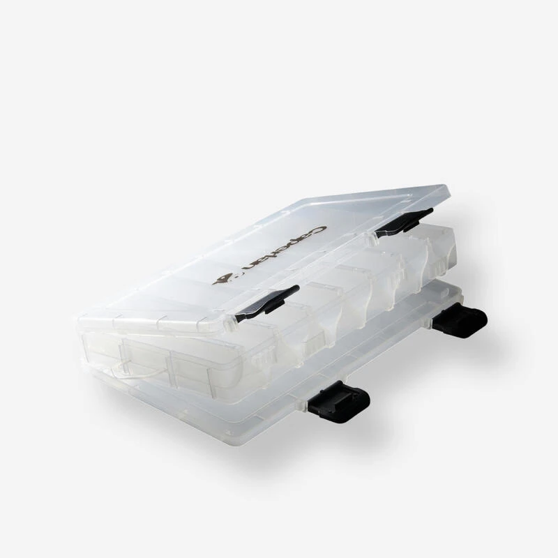 Cette boîte est conçue pour ranger et transporter ces leurres de pêche.Cette boîte permet de ranger des leurres et cuillères de toutes formes et tailles jusqu’à 15 cm.